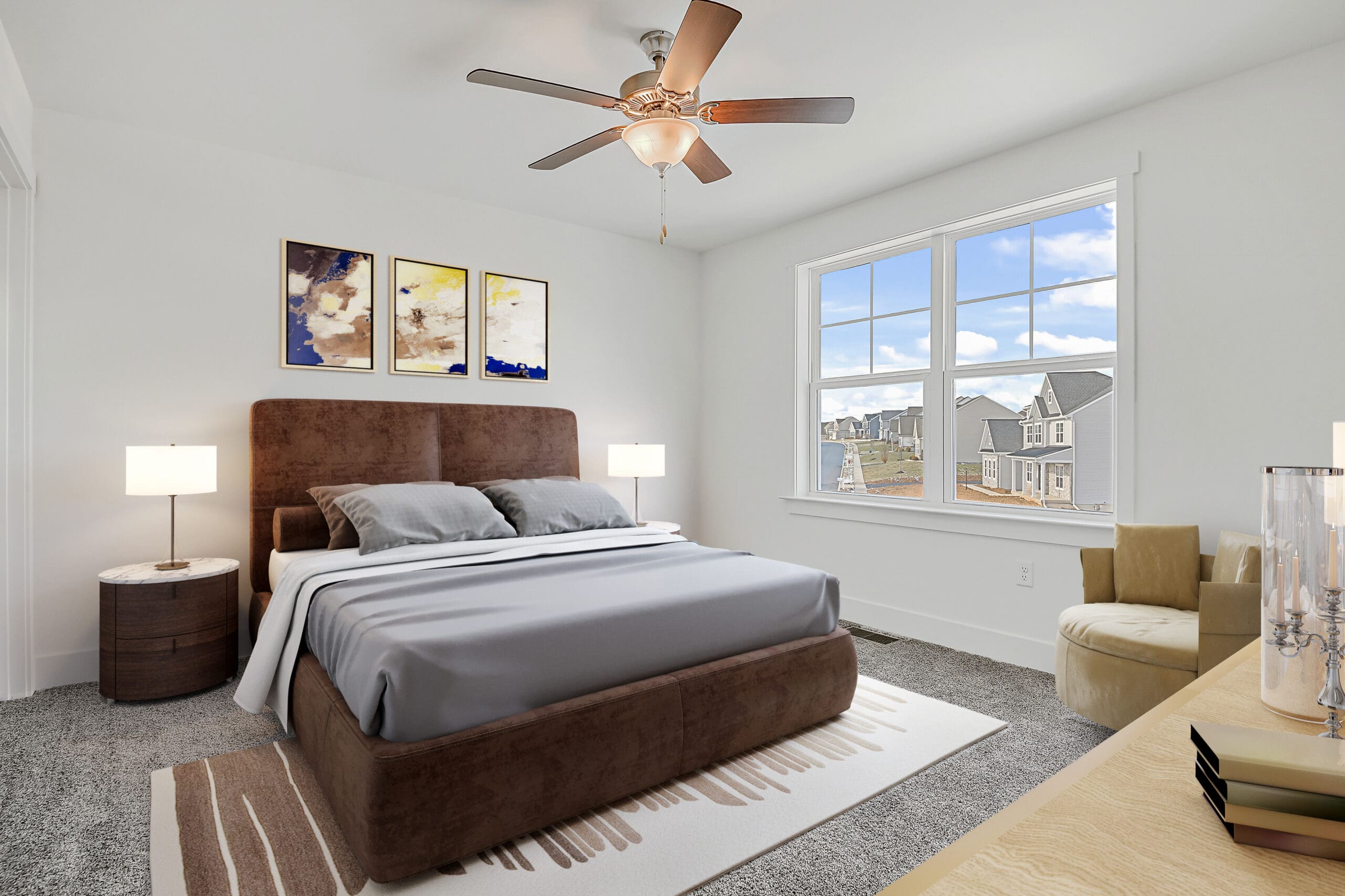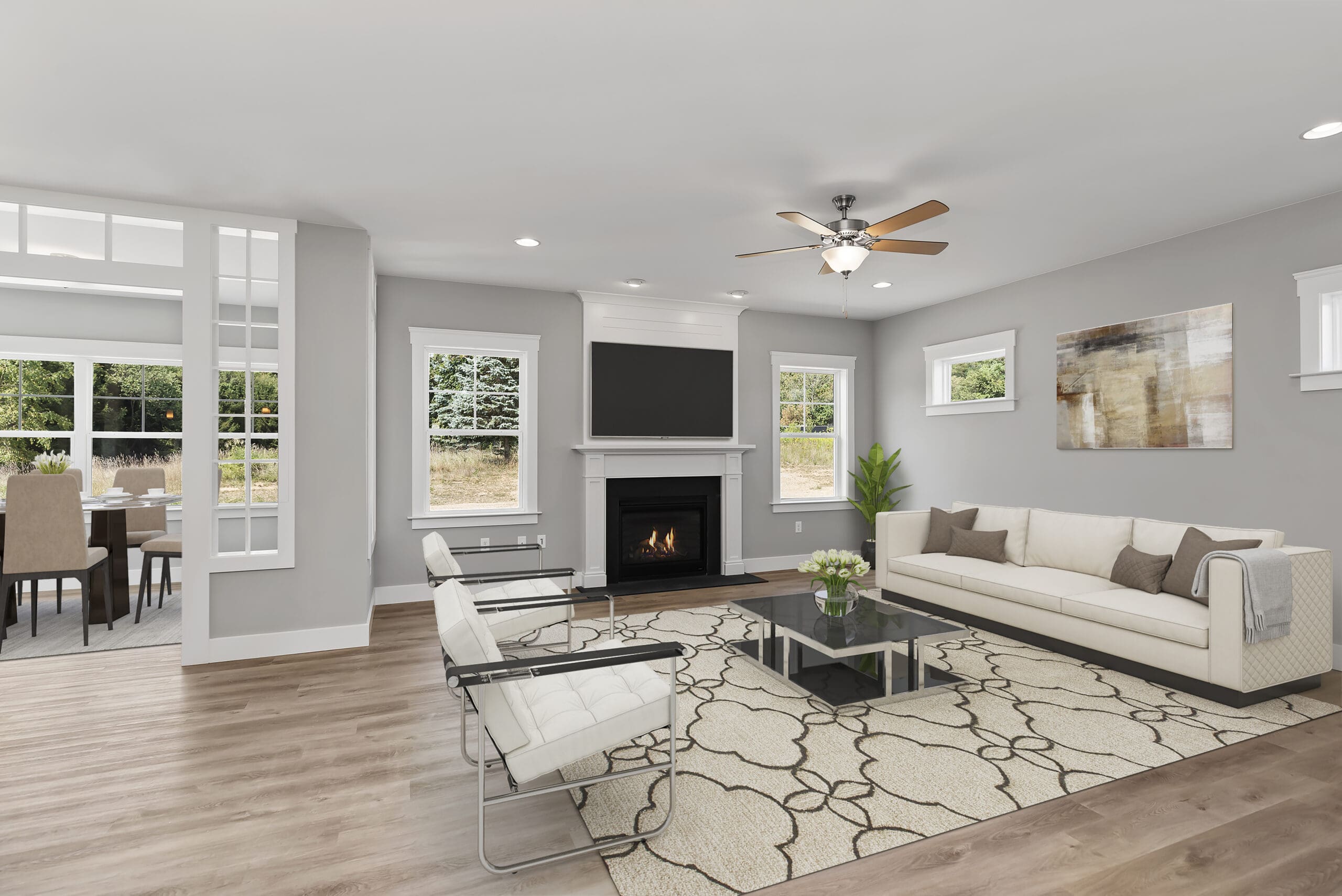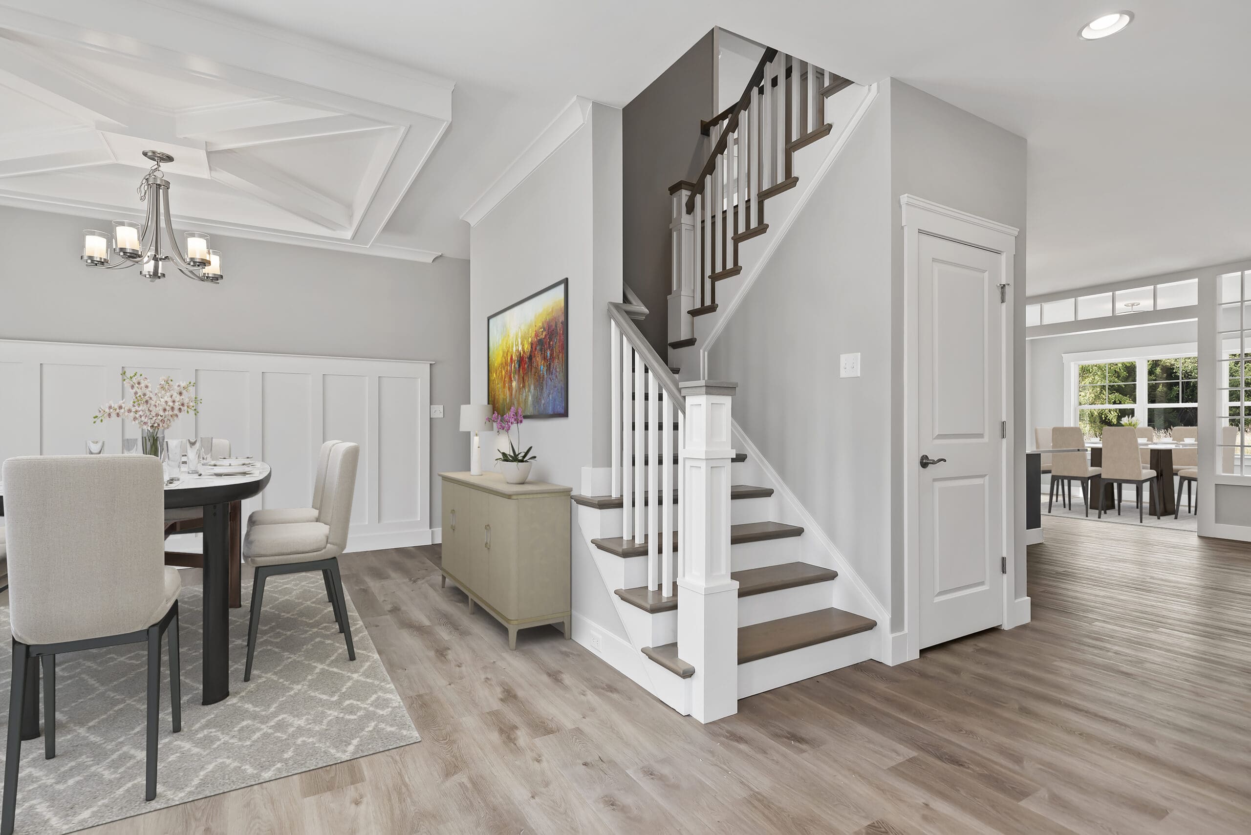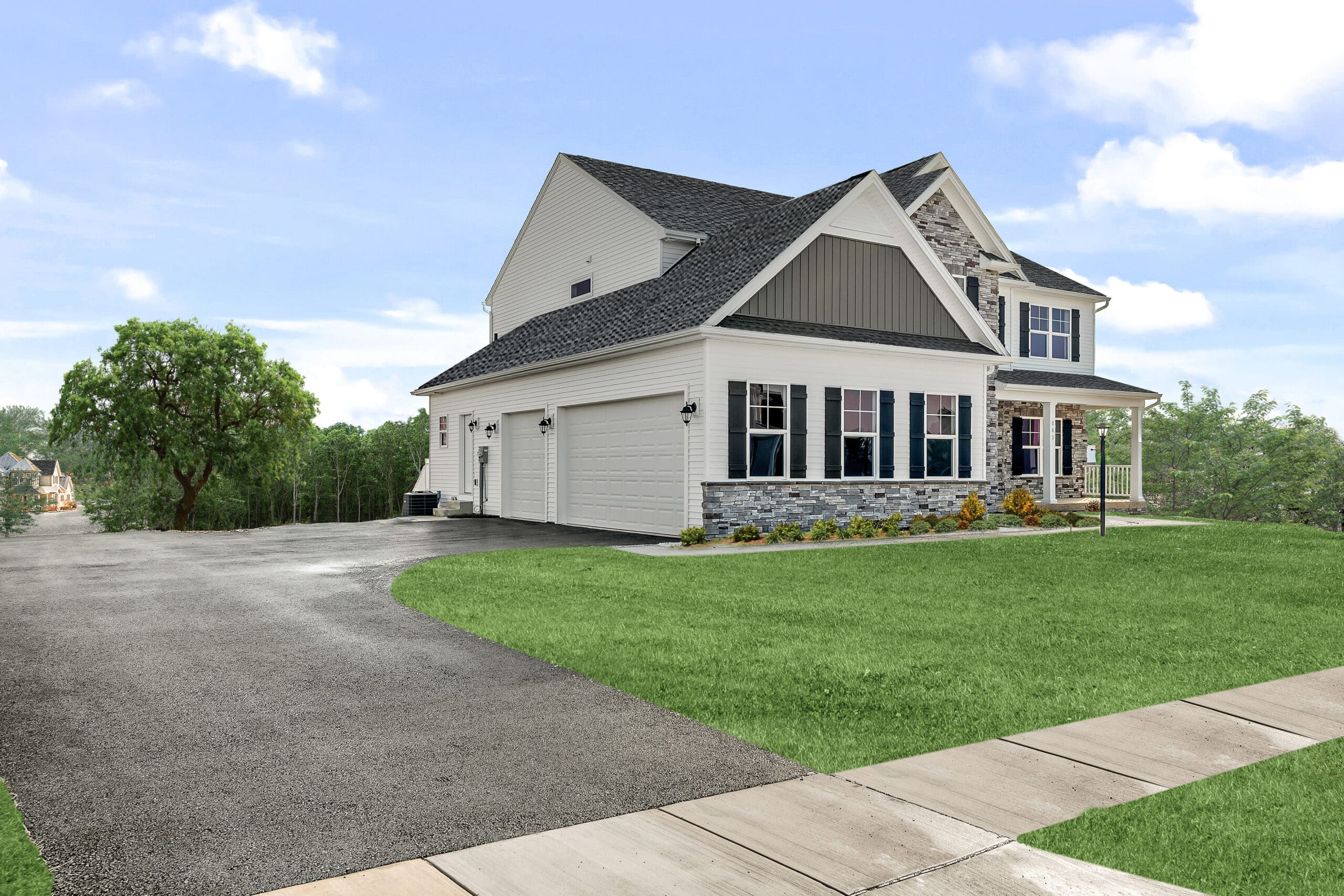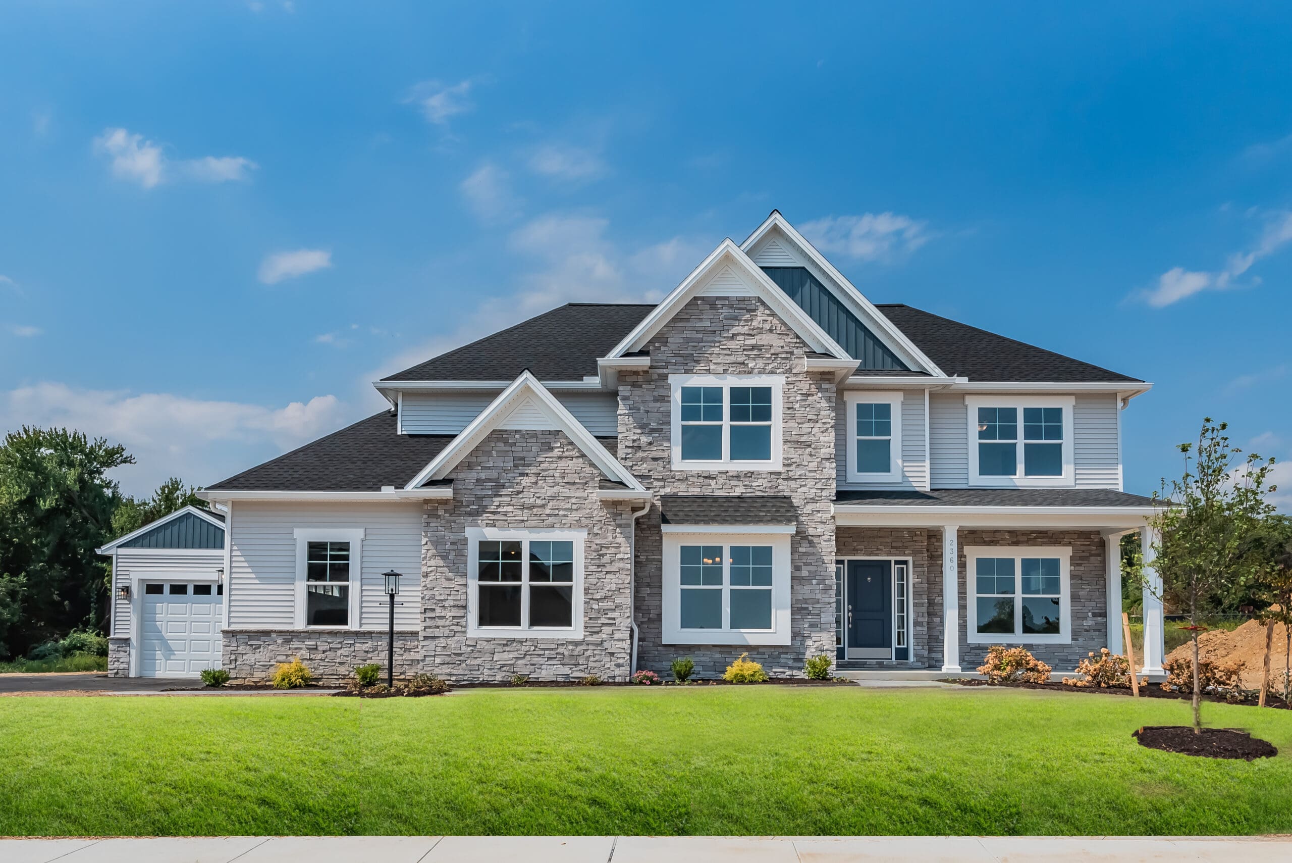 The Regency new home plan features 2,954 to 3,044 square feet of living space. Spacious family room, kitchen with island and pantry, flex room, owner’s suite with walk-in closet, 3 additional bedrooms, second floor laundry, full basement and two car front entry garage are also included (3-door side entry available).